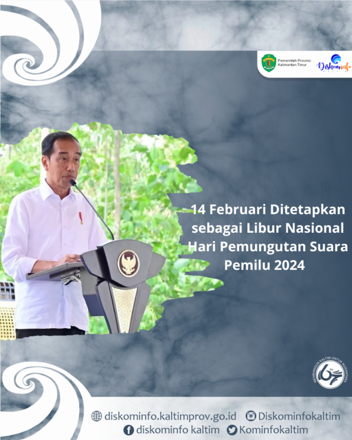 Pertama, hari Rabu tanggal 14 Februari 2024 ditetapkan sebagai hari libur nasional dalam rangka Pemilu Tahun 2024.