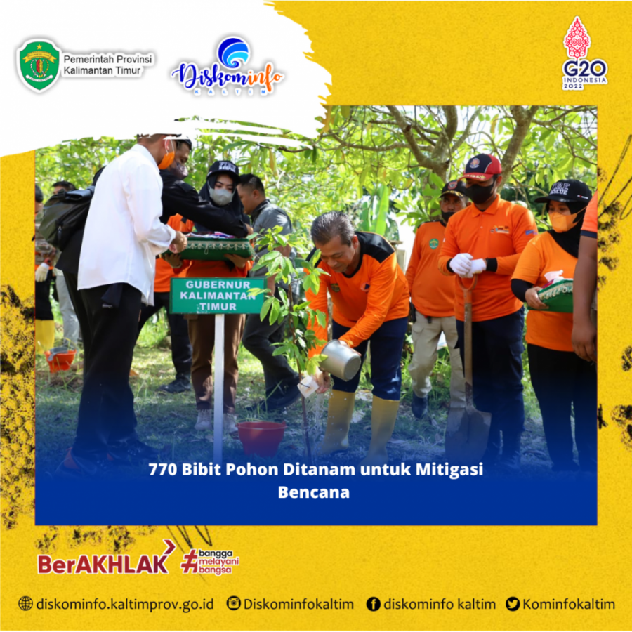 Balikpapan - Sebanyak 770 bibit pohon ditanam di atas lahan hutan kota Komplek Perumahan Daksa Sepinggan Balikpapan. Penanaman pohon tersebut menjadi salah satu rangkaian acara dalam Peringatan Bulan Pengurangan Risiko Bencana (PRB) Tahun 2022 di Kalimantan Timur (Kaltim).