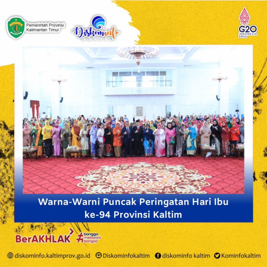 Adapun Kemeriahan kegiatan ini sudah terlihat sejak awal acara, yakni persembahan paduan suara dari Dharma Wanita Persatuan Provinsi (DWP) Kaltim, pembacaan sejarah Hari Ibu,pemutaran video pembacaan puisi oleh Wakil Gubernur Kaltim, penampilan seni pertunjukkan dari Sanggar Pilar yang menghipnotis haru seluruh yang hadir dan pemberian hadiah kepada Ibu berbusana terbaik di Hari Ibu. (cht/pt)